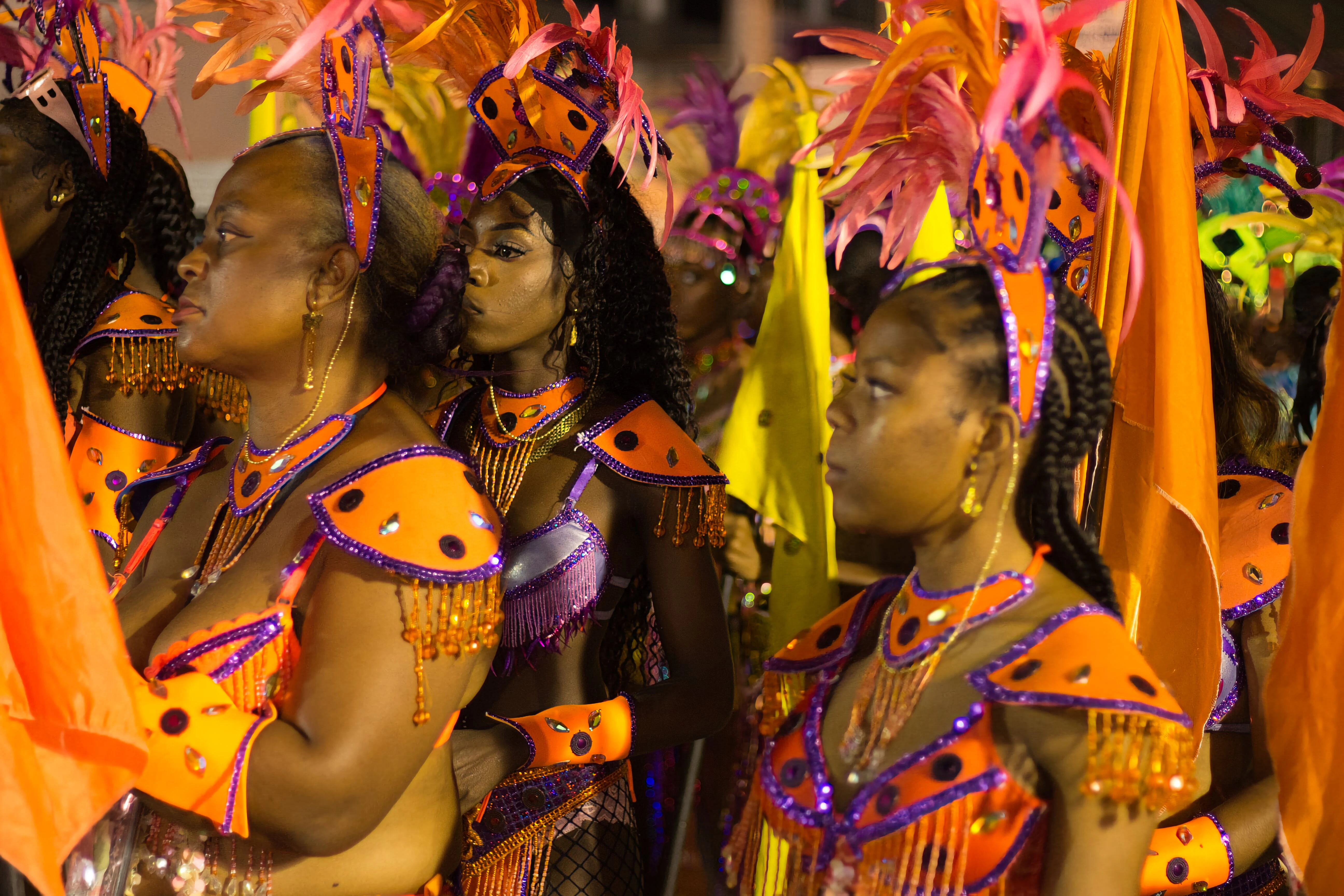Women in colorful costumes at a festival
