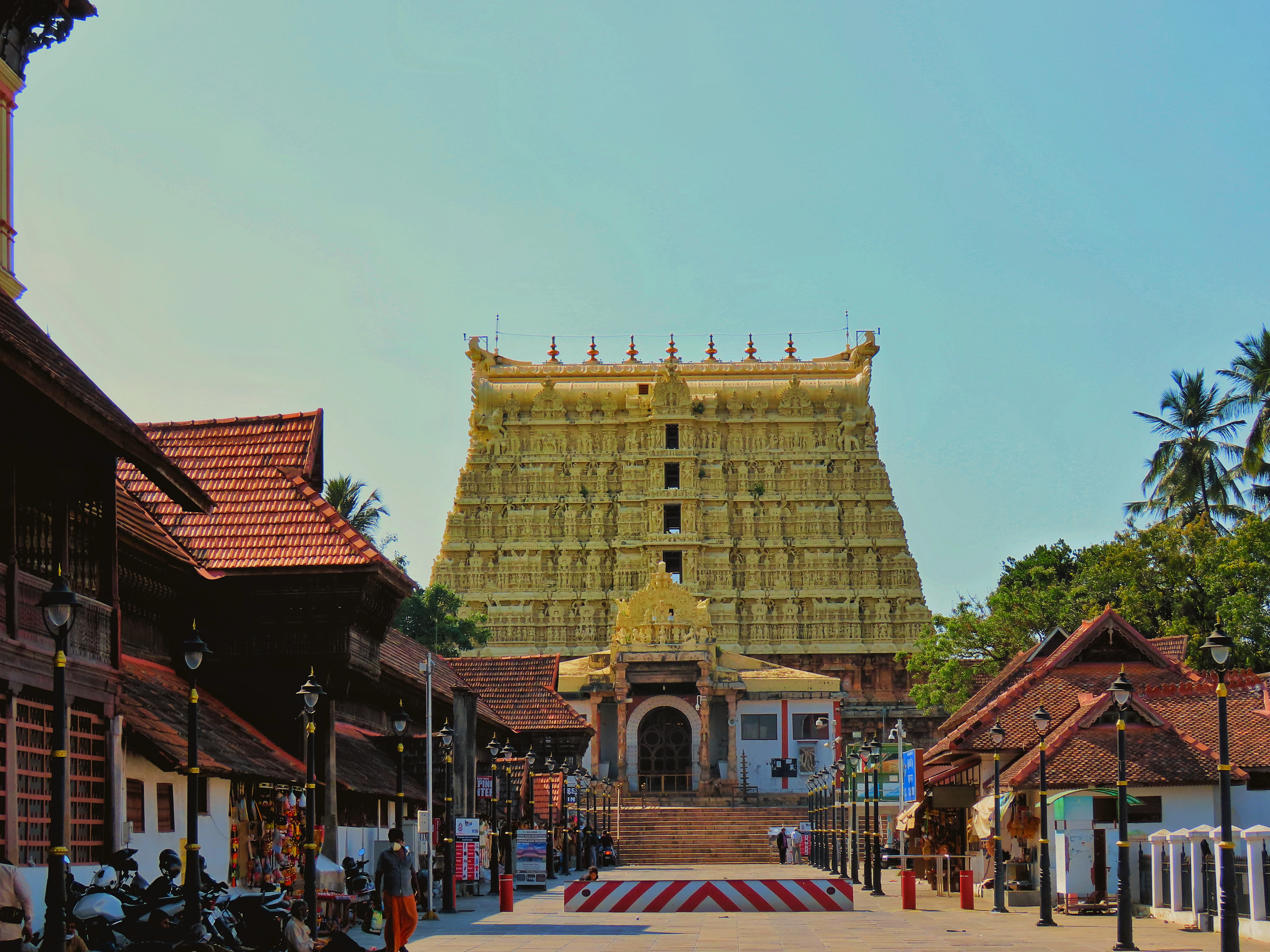 Temple Padmanabhaswamy — seuls les hindous peuvent entrer. Les hommes doivent porter un Dhoti (jupe-culotte), les femmes un Sari ou un Salwar.