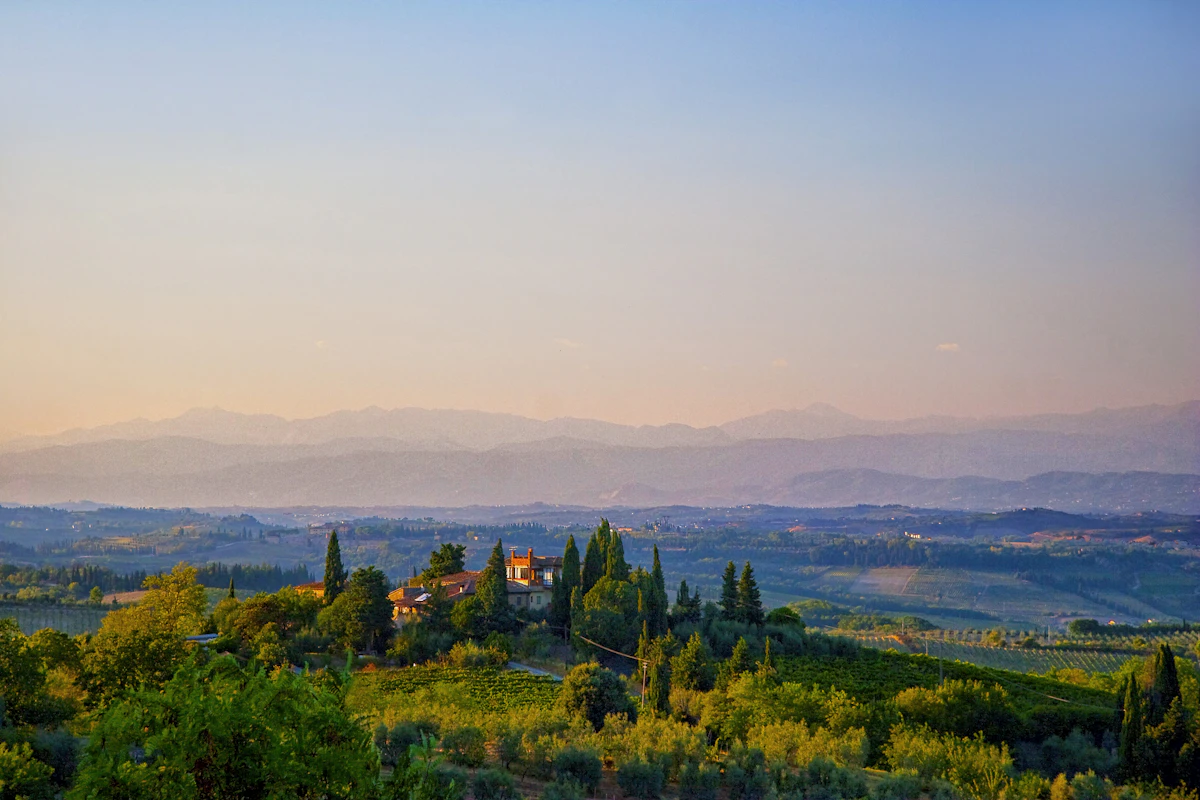 La Toscane est l'incarnation du mode de vie italien — une région où des paysages vallonnés se mêlent à des allées de cyprès, des champs de blé dorés à des Borghi médiévaux et des villes d'art mondialement connues à des monastères paisibles, formant une image qui enchante artistes, poètes et voyageurs depuis des siècles. Le cœur du paysage toscan est la Val d'Orcia, patrimoine mondial de l'UNESCO depuis 2004 : ici se dressent les rangées de cyprès emblématiques qui ornent chaque poster de l'Italie, ici la ville Renaissance de Pienza surplombe des pâturages, et ici les vignerons produisent le puissant Brunello di Montalcino. Plus au nord s'étend la région du Chianti entre Florence et Sienne — un labyrinthe de vignobles, d'oliveraies et de fermes en pierre, où le célèbre Chianti Classico mûrit. San Gimignano avec ses tours médiévales est la silhouette du Moyen Âge, Volterra impressionne par ses racines étrusques et son artisanat en albâtre, et Cortona offre depuis sa hauteur une vue panoramique sur le lac Trasimène. En plus des métropoles artistiques Florence et Sienne, la Toscane surprend avec des thermes cachés à Saturnia, la côte sauvage de la Maremme et les carrières de marbre blanc de Carrare. Culinairement, la Toscane est une fête de la simplicité : Bistecca alla Fiorentina de boeuf Chianina, Panzanella avec des tomates mûres au soleil, Ribollita en tant que soupe paysanne copieuse et Cantuccini avec Vin Santo pour terminer. Chaque bouchée raconte une philosophie culinaire qui crée des chefs-d'œuvre à partir de quelques ingrédients de premier choix.