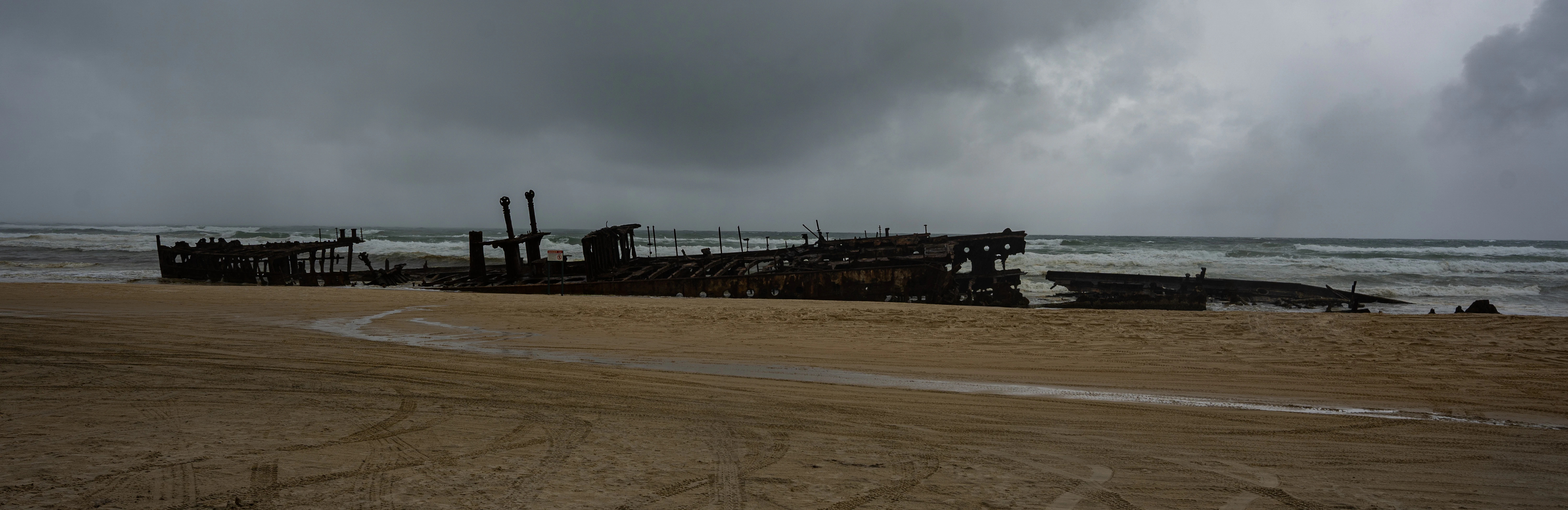 Plage de sable sans fin servant d'autoroute — aventure tout-terrain avec épaves de navires rouillés et falaises de sable colorées