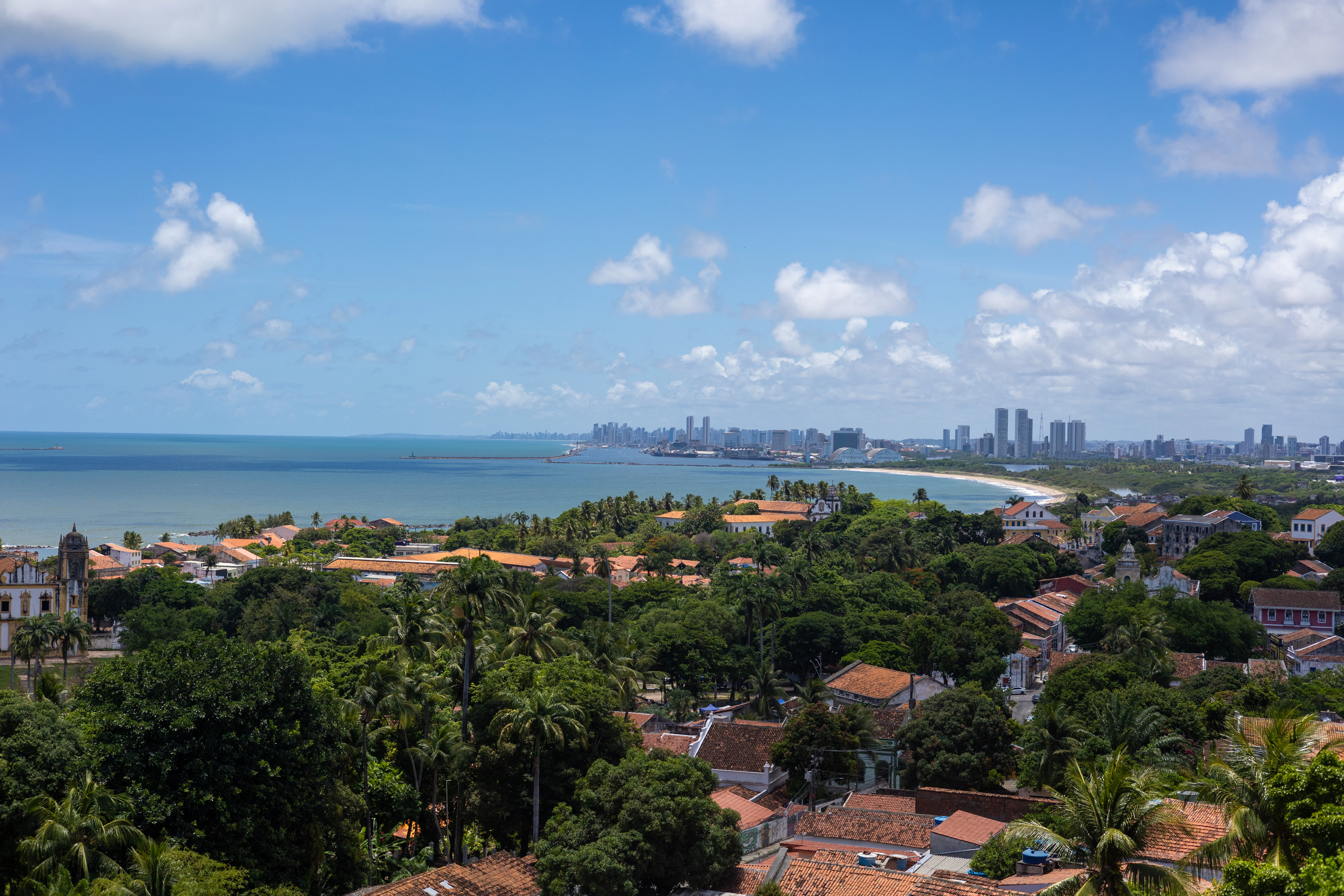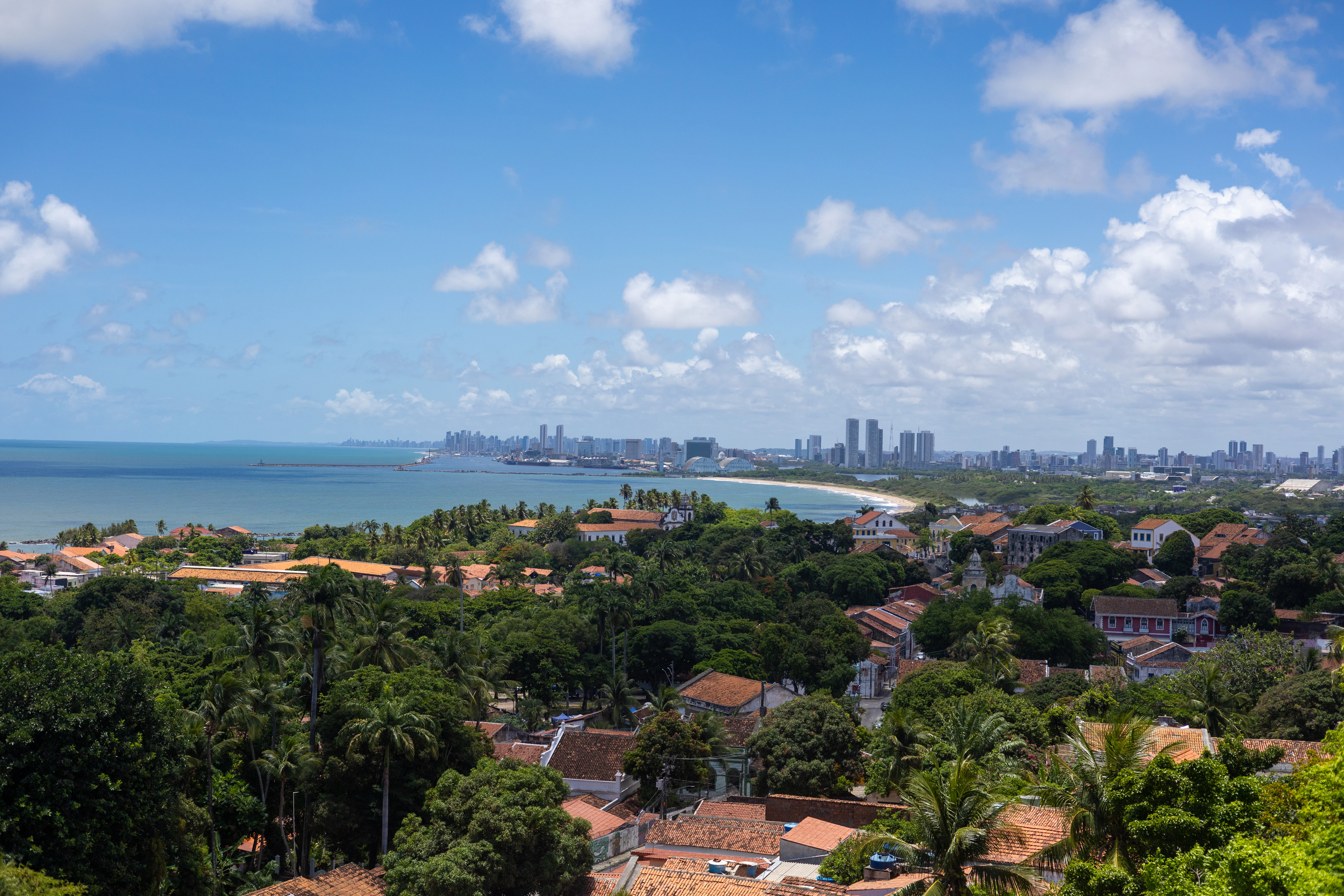 Recife est la capitale de l'État de Pernambuco dans le nord-est du Brésil et est souvent appelée la Venise du Brésil — la ville est construite sur des îles et des péninsules, traversée par des rivières et reliée par des dizaines de ponts. Avec environ 1,6 million d'habitants, Recife est le centre économique et culturel du nord-est brésilien. Le quartier historique de Recife Antigo (Vieux Recife) sur une île dans le port conserve une magnifique architecture coloniale du 17ème siècle, lorsque les Néerlandais ont occupé la ville et en ont fait le port le plus important du Nouveau Monde. La Rua do Bom Jesus était autrefois la rue de la première synagogue des Amériques (Kahal Zur Israel, 1636) et est aujourd'hui une rue animée. À seulement 7 km au nord se trouve Olinda, l'une des villes coloniales les mieux préservées du Brésil et classée au patrimoine mondial de l'UNESCO depuis 1982 : des églises baroques, des maisons pastel, des ateliers d'artistes et une colline offrant une vue panoramique sur la côte font d'Olinda une œuvre d'art totale. Le carnaval d'Olinda est le plus grand carnaval de rue du Brésil — avec des poupées géantes (Bonecos Gigantes), de la musique Frevo et des rythmes de Maracatu. Le Frevo, un style musical énergique avec danse acrobatique et parapluies colorés, est né à Recife et est inscrit au patrimoine culturel immatériel de l'UNESCO depuis 2012. Le Maracatu, un rythme aux racines africaines datant de l'époque de l'esclavage, est l'âme de Pernambuco. Les plages de Boa Viagem s'étendent sur 7 km le long de la ville, protégées par un récif naturel qui forme des piscines naturelles à marée basse. Porto de Galinhas, situé à environ 60 km au sud, est considéré comme l'une des plus belles plages du Brésil avec ses piscines naturelles turquoise et ses récifs coralliens.
